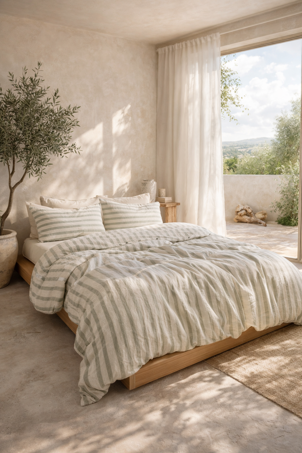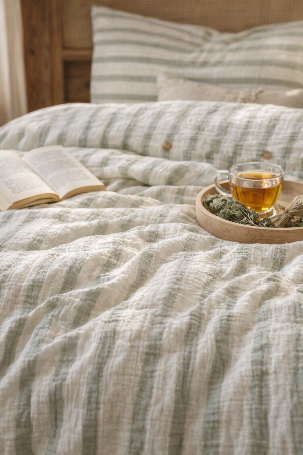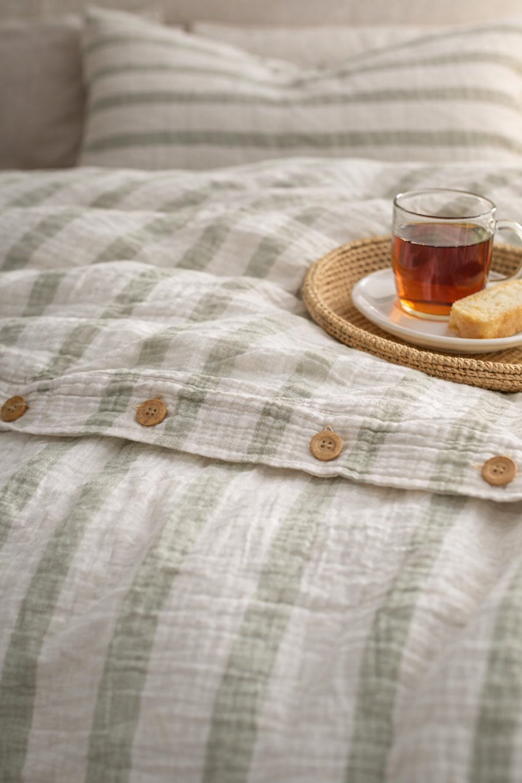 %100 Pamuk Müslin Nevresim Takımı - Naturel Yeşil Renk (Çift Kişilik 200x220 cm)
