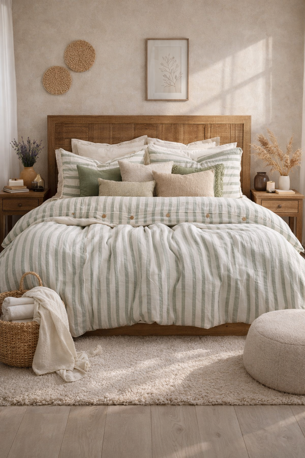 Naturel yeşil rengi, doğal ve sade bir görünüm sunarak, yatak odanıza huzur veren bir atmosfer katar. Minimalist tasarımı, çağdaş ve klasik dekorasyon stilleriyle mükemmel bir uyum içinde çalışır. Bu nevresim takımı, sadece fonksiyonel bir ürün değil, aynı zamanda dekoratif bir unsur olarak da öne çıkmaktadır.