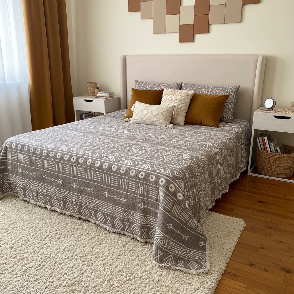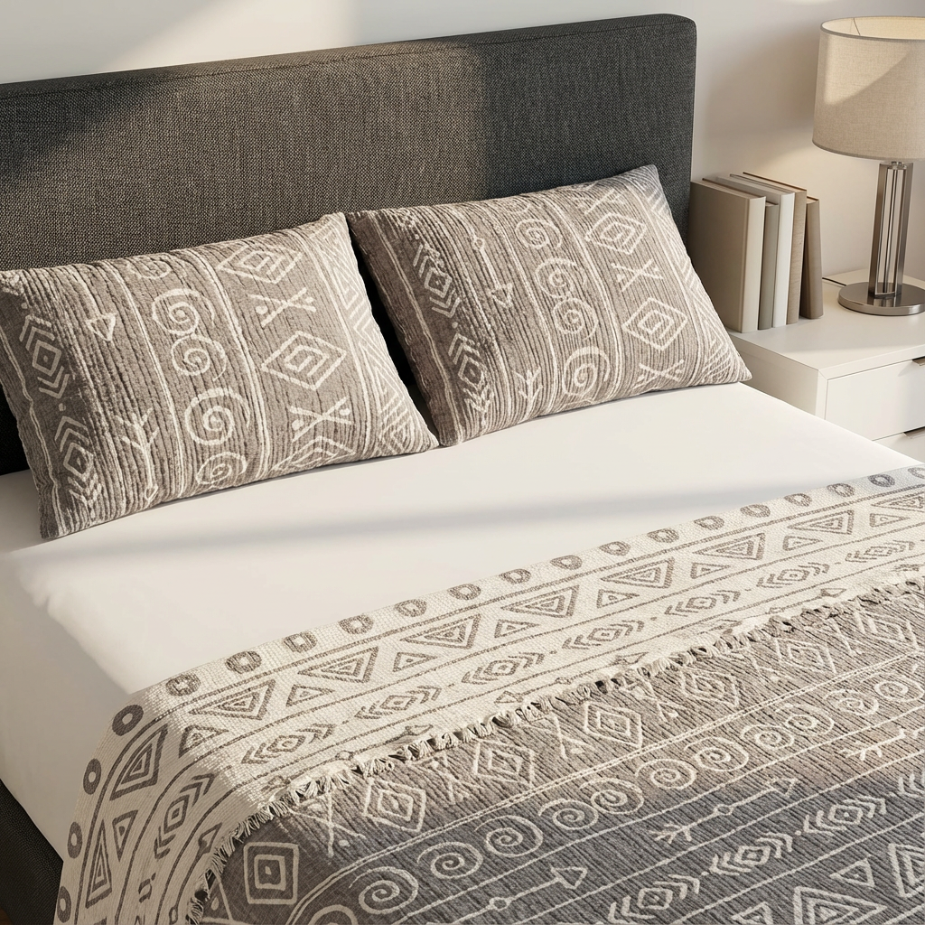 - Geometrik desenleriyle modern ve şık bir görünüm kazandırırken, antrasit rengiyle her yatak odasına uyum sağlar.