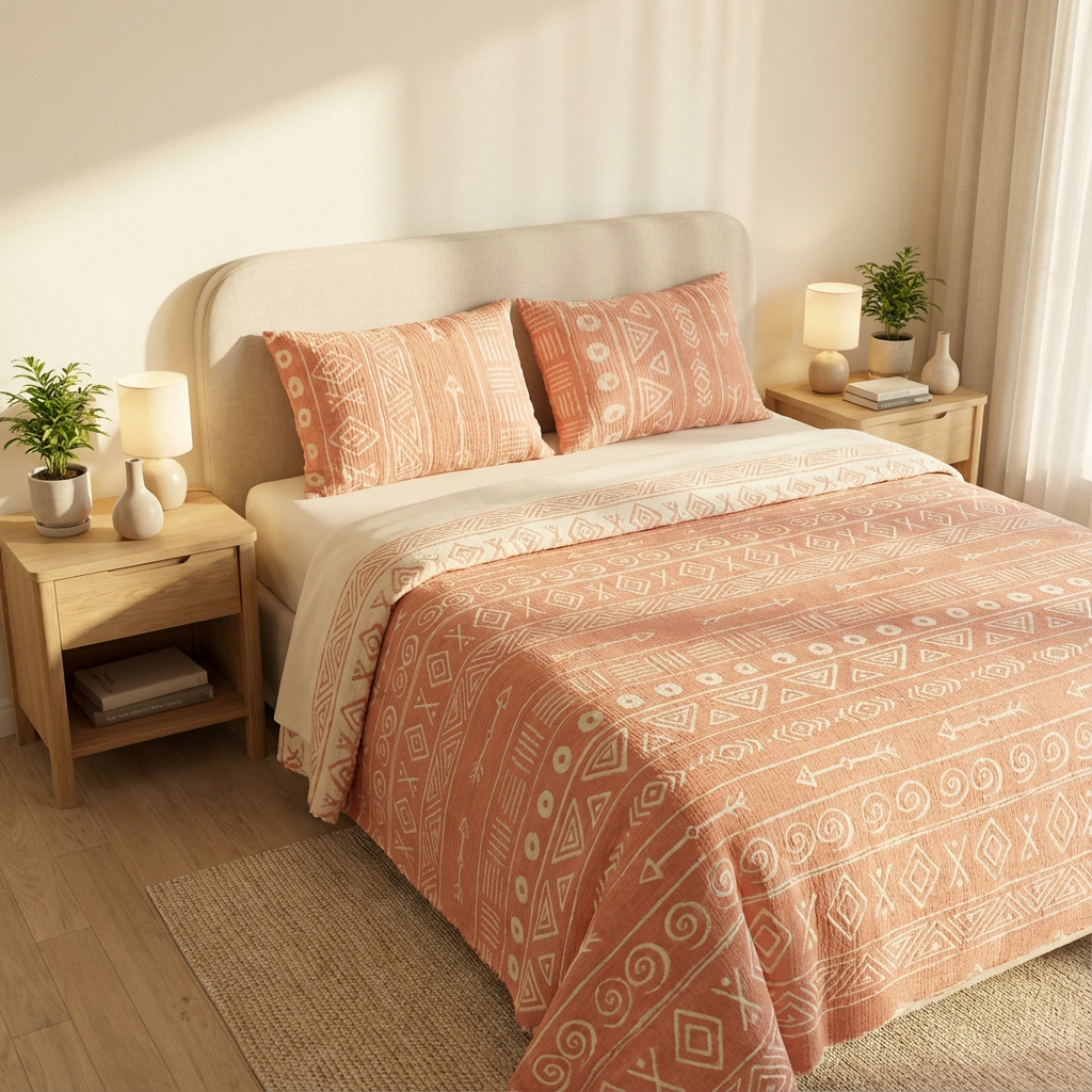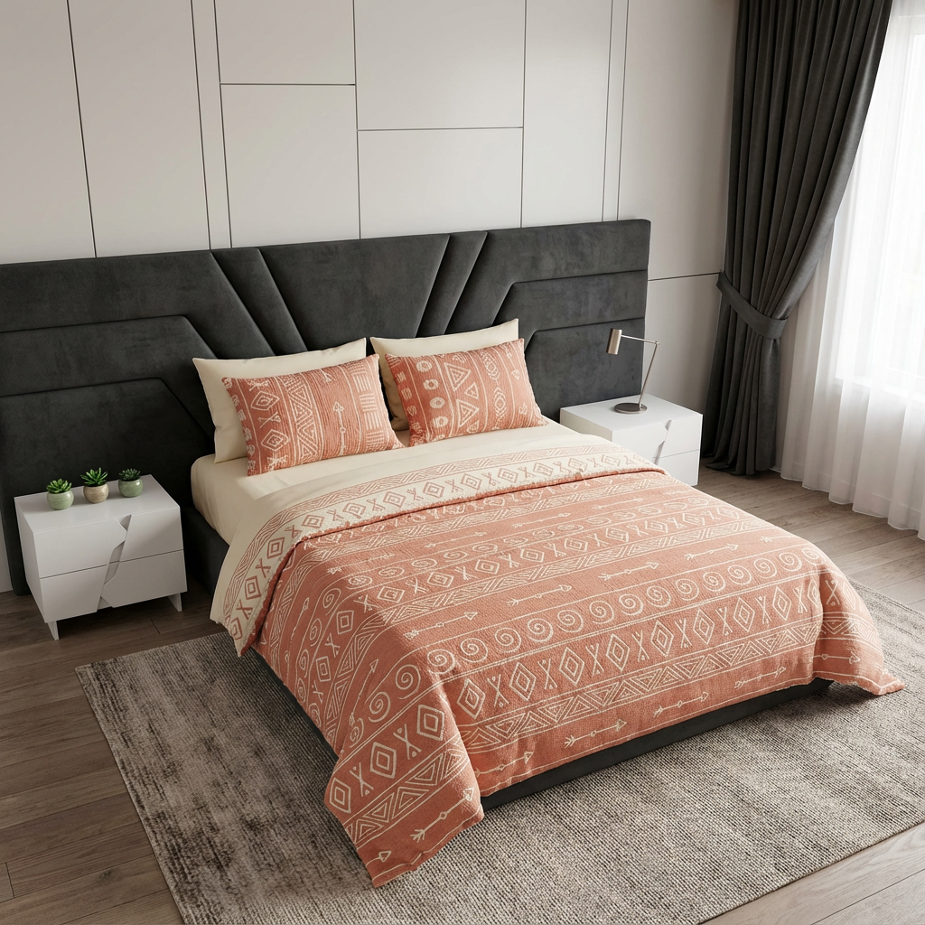 - SET İÇERİĞİ 1 Adet Yastık Kılıfı 50x70 cm 1 Adet Yatak Örtüsü 160x220 cm - Geometrik desenleriyle modern ve bohem bir görünüm sunar, mekanınıza şıklık katar.