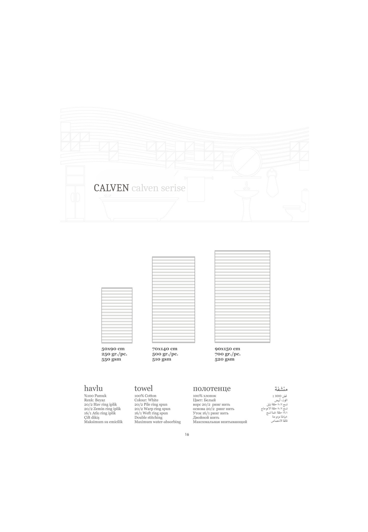CALVEN Hav20/2 Zemin20/2 Atkı16/1 İplik %100 Pamuk Banyo Havlu Seti