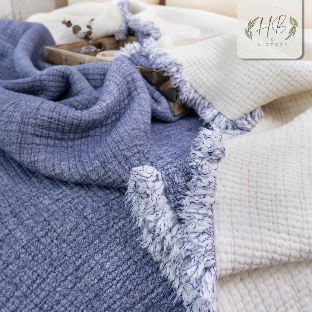 Müslin 6 katlı çift kişilik mavi renk yorgan, yüksek kaliteli ve rahat bir uyku deneyimi sunmak için özel olarak tasarlanmıştır. Bu yorgan, yatak odanızda estetik bir görünüm sağlamak için zarif mavi renge sahiptir. 240x230 cm boyutlarındaki çift kişilik yorgan, geniş bir yatağa mükemmel şekilde uyacak şekilde tasarlanmıştır.