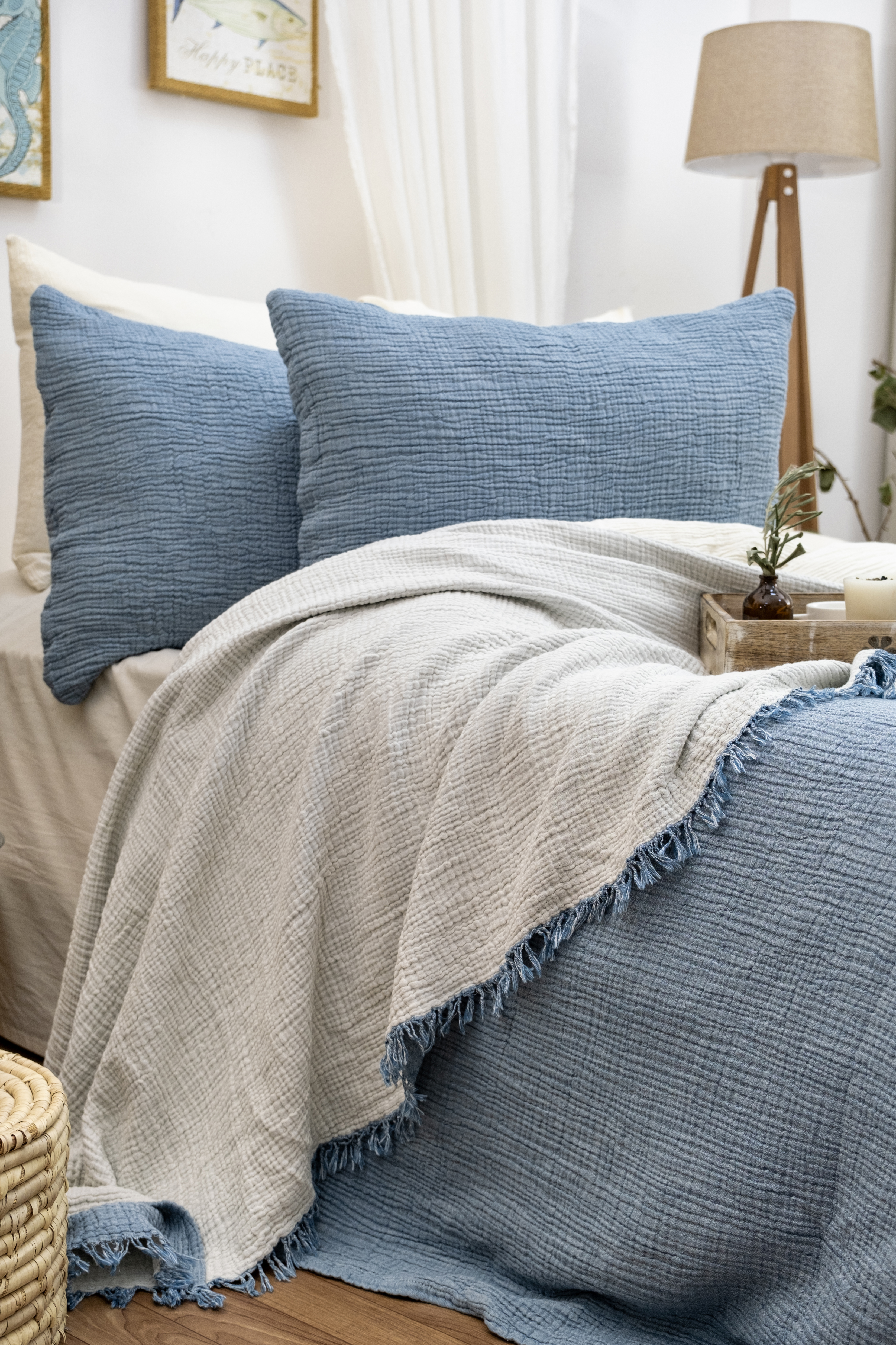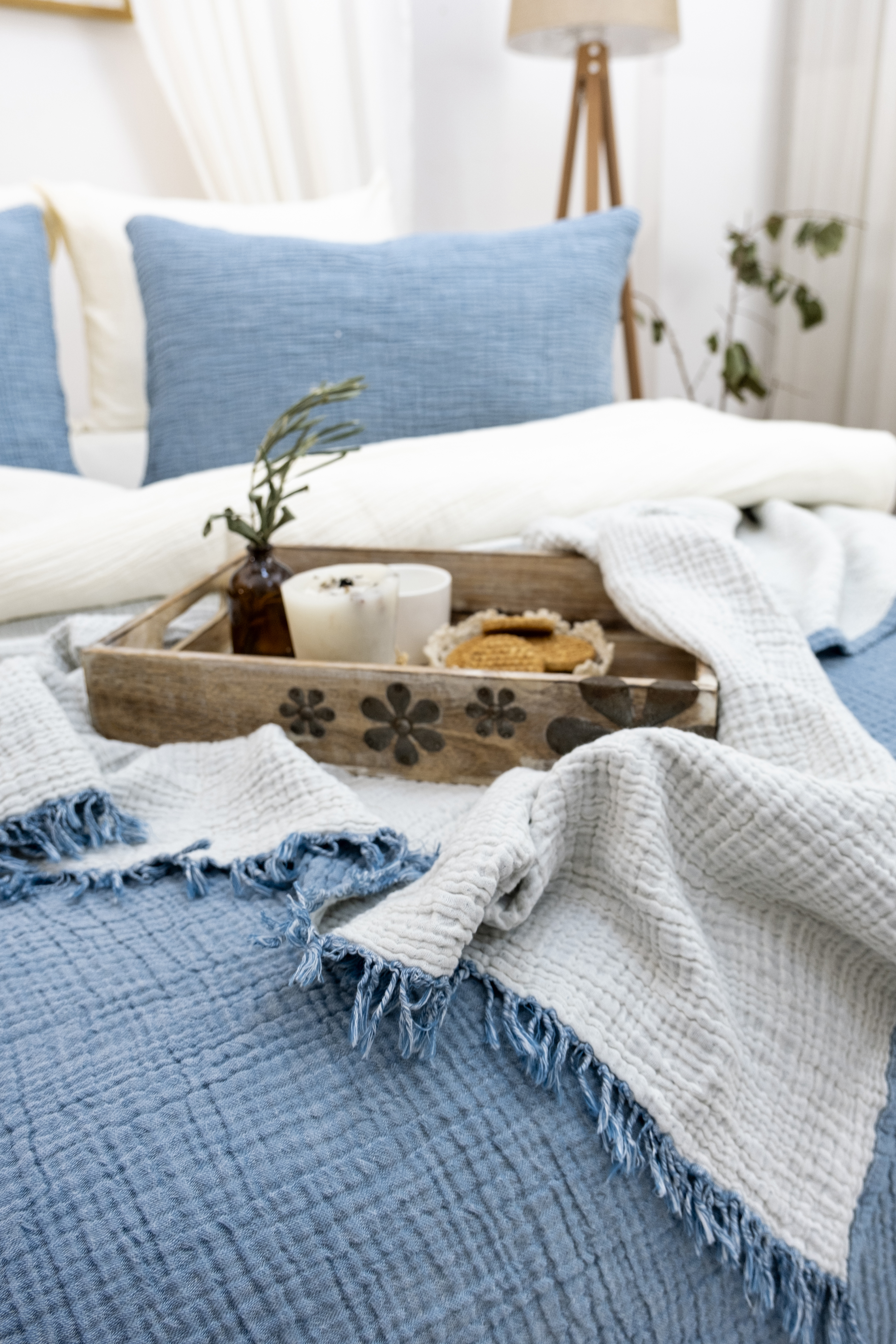 Müslin Tek Kişilik Mavi Renk Yatak Örtüsü, kaliteli malzemelerden üretilmiş, şık ve modern bir üründür. Üstün kaliteli müslin kumaşı sayesinde yumuşak ve dokulu bir dokuya sahiptir. 4 katlı olması sayesinde yatağınızı daha da konforlu hale getirir ve sıcak yaz günlerinde serin ve rahat bir uyku sağlar.
