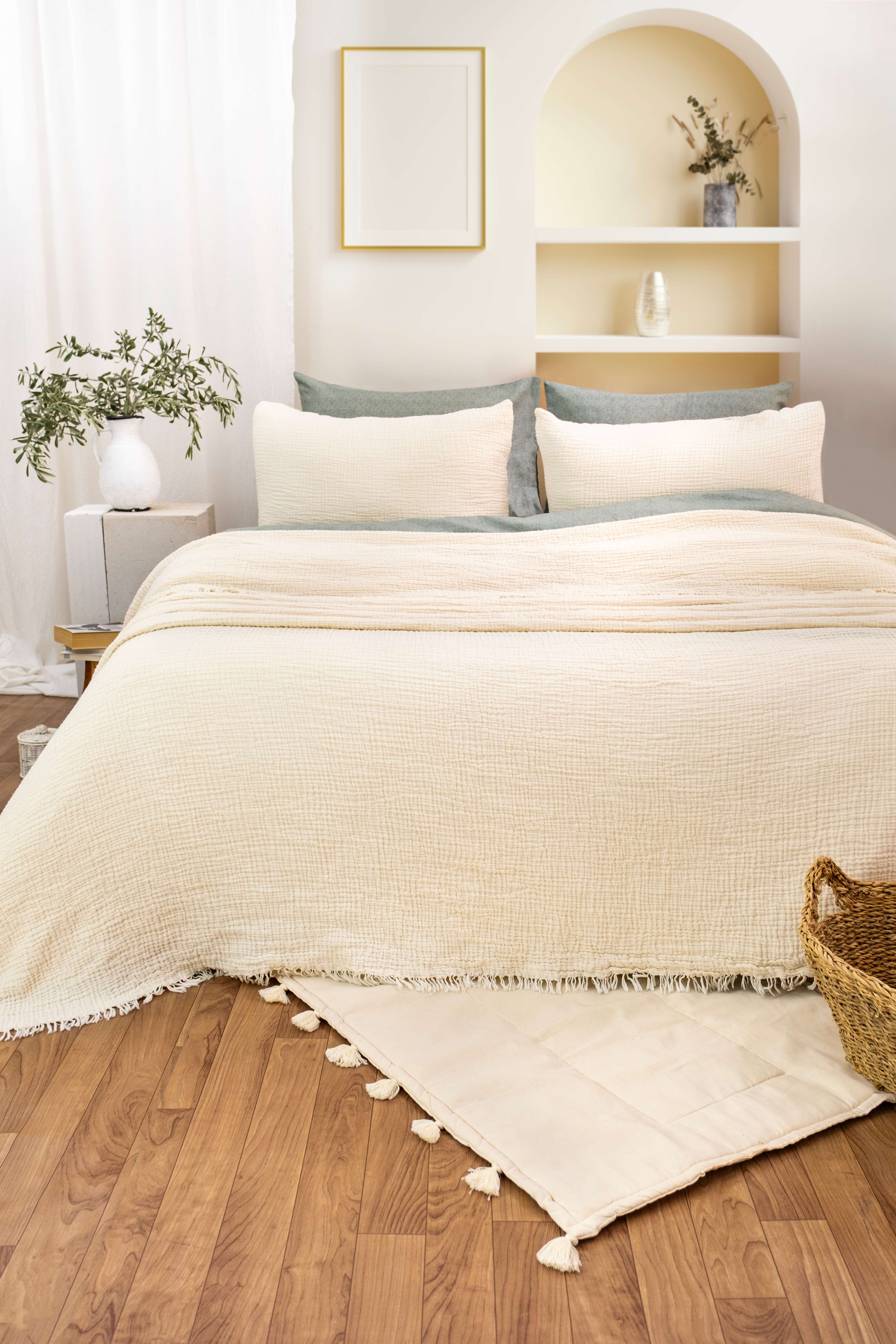 Bu üstün kaliteli müslin yatak örtüsü ile yatak odanızın şıklığını ve konforunu arttırın. Sağlıklı ve doğal malzemelerden üretilmiş olan Müslin Tek Kişilik Ivory Renk Yatak Örtüsü, hem göze hitap edecek hem de rahat bir uyku ortamı sağlayacaktır.