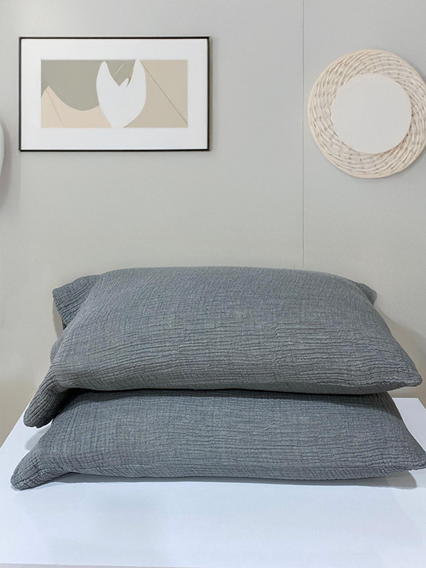 Müslin 4 Katlı Gri Renk Yastık Kılıfı (50x70 cm) - 2 Adet