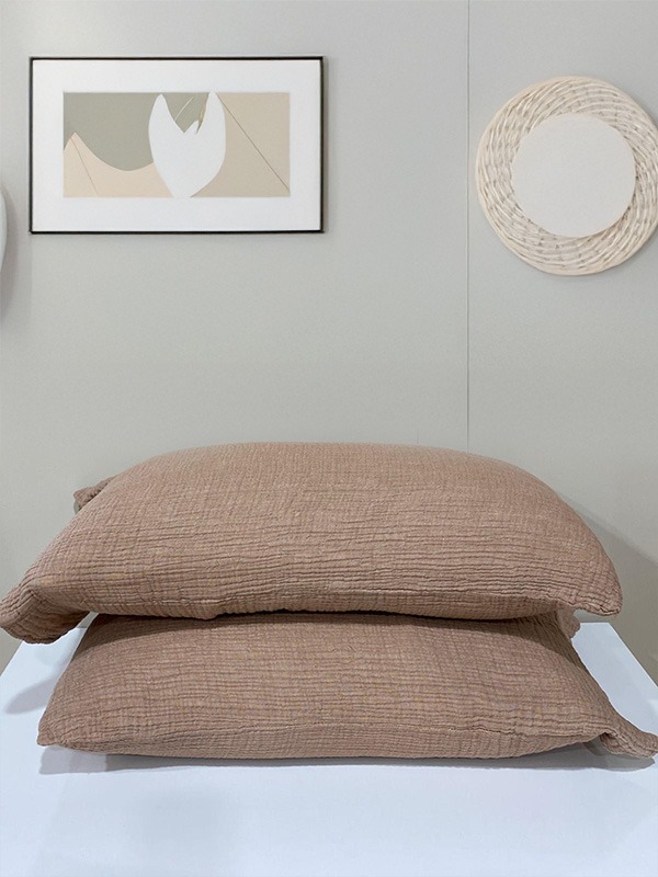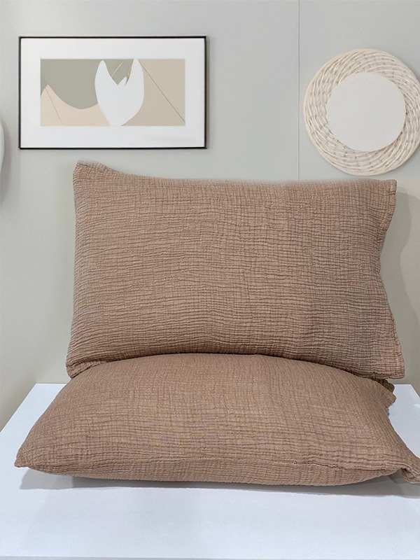 Müslin 4 Katlı Kahverengi Renk 50x70 cm 2 Adet Yastık Kılıfı