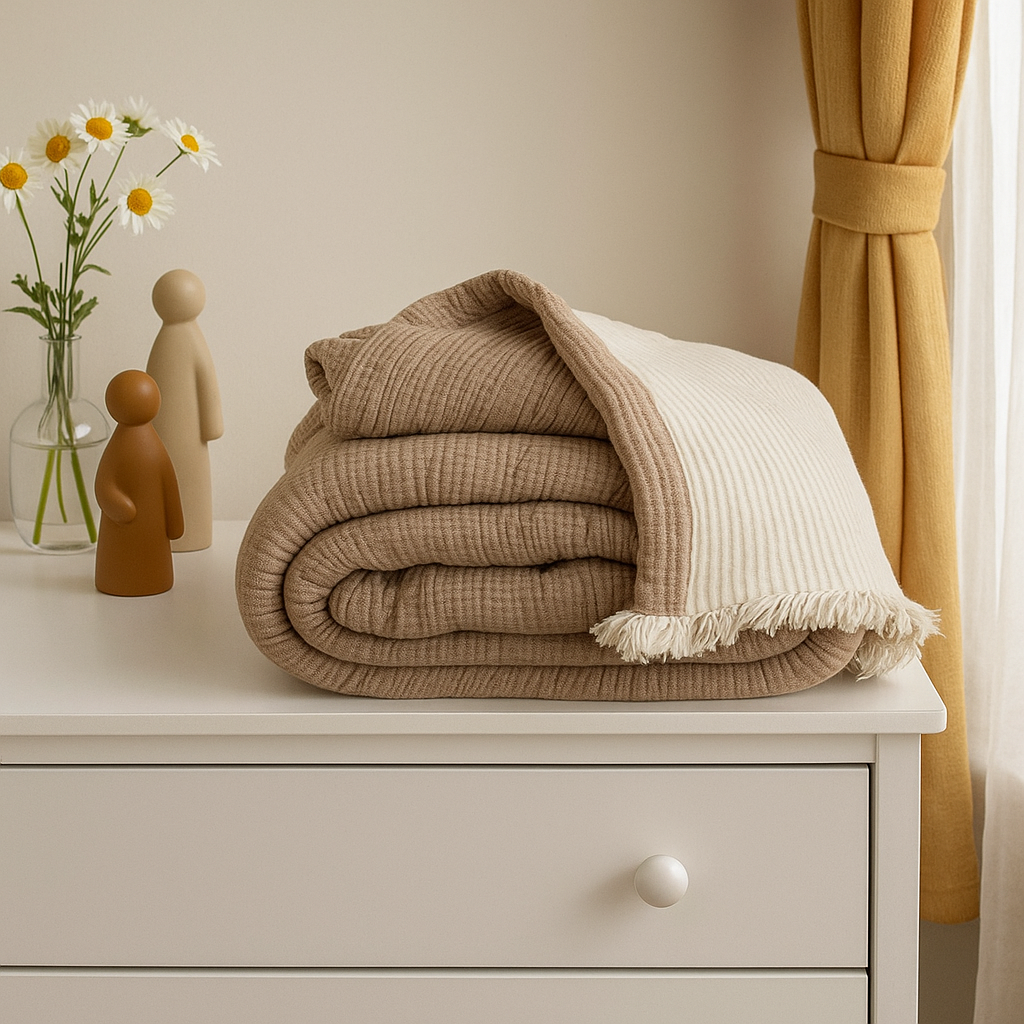 Müslin 6 Katlı Tek Kişilik Kahve Renk Yorgan 170x220 cm, %100 doğal ve sağlıklı bir uyku ortamı sağlar. Şık tasarımı, rahatlığı ve kullanışlılığı ile sizlere en iyi uyku deneyimini sunmaya yardımcı olacaktır. Ürünümüz, Avrupa standartlarına uygun olarak üretilmiş olup, kalite ve dayanıklılık konusunda da güven vermektedir.