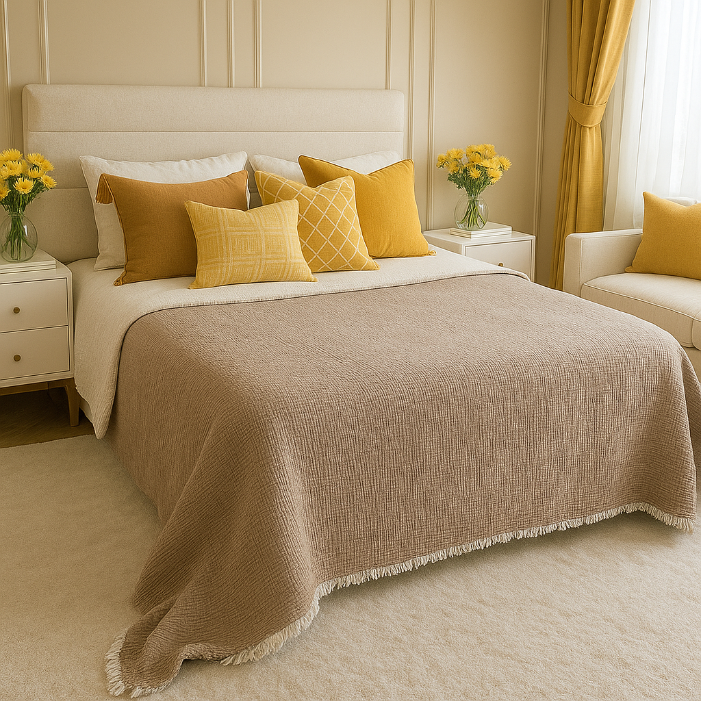 Müslin 6 Katlı Tek Kişilik Kahve Renk Yorgan 170x220 cm, size yüksek kaliteli ve konforlu bir uyku deneyimi sunmak için tasarlanmıştır. Bu yorgan, sıcaklık düzenlemenizi sağlayacak, yumuşak ve hafif yapısıyla sizi rahat ettirecek ve güne dinç bir şekilde başlamanızı sağlayacaktır.