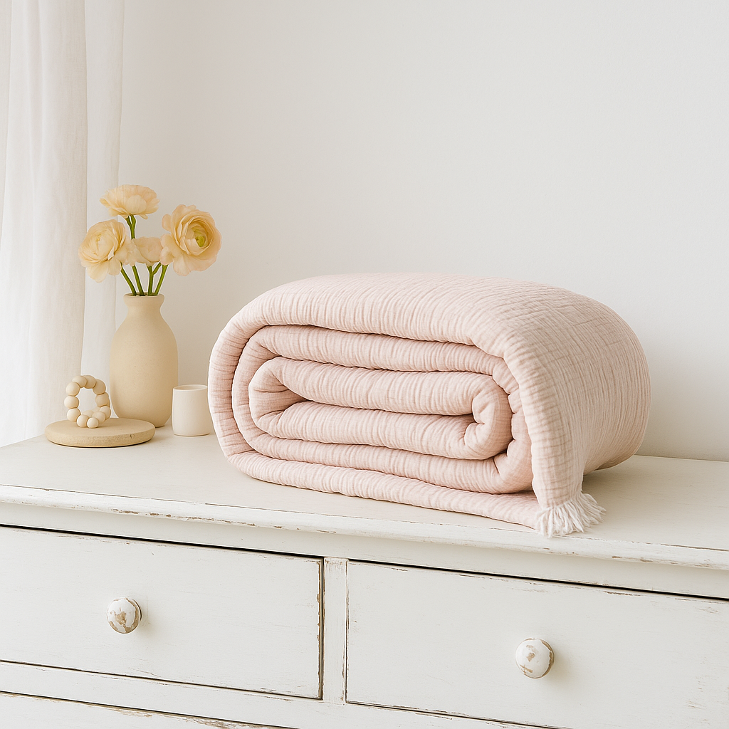 Doğallığın huzurunu ve sadeliğin zarafetini bir araya getiren 6 katlı müslin yorgan, evinize sıcaklık ve yumuşaklık katmak için tasarlandı.