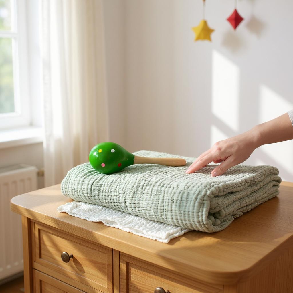 Çağla yeşili tonu, doğadan ilham alan huzurlu ve dingin bir atmosfer yaratır. Hem kız hem erkek bebekler için uygundur; sade, doğal ve zamansız görünümüyle bebek odalarına zarif bir dokunuş katar. Hafif yapısı sayesinde bebek arabasında, beşikte, kucakta ya da seyahatlerde rahatlıkla kullanılabilir.