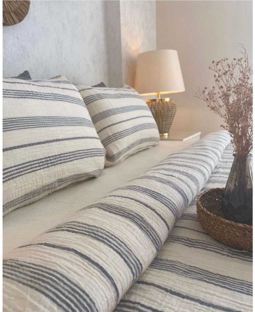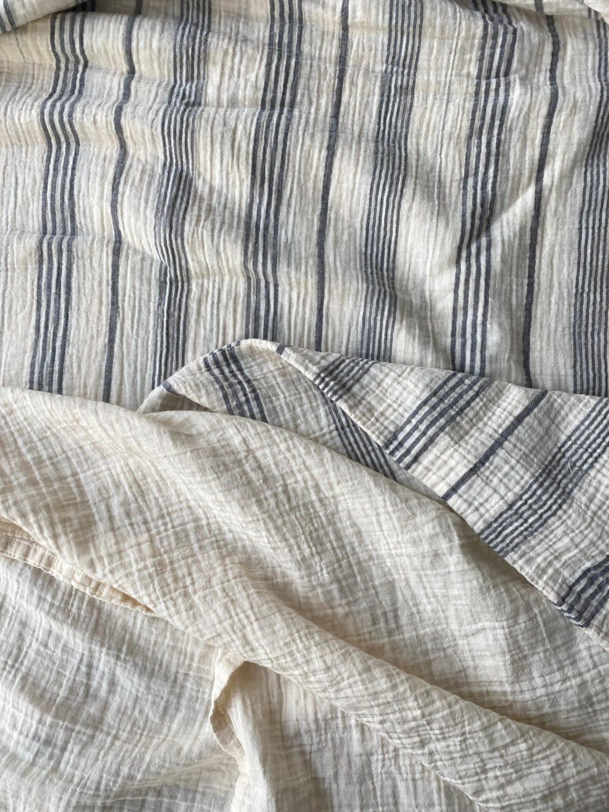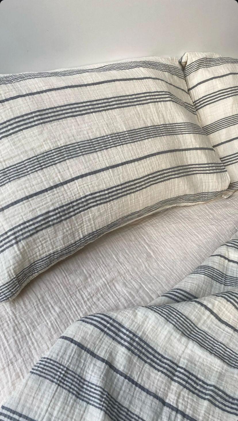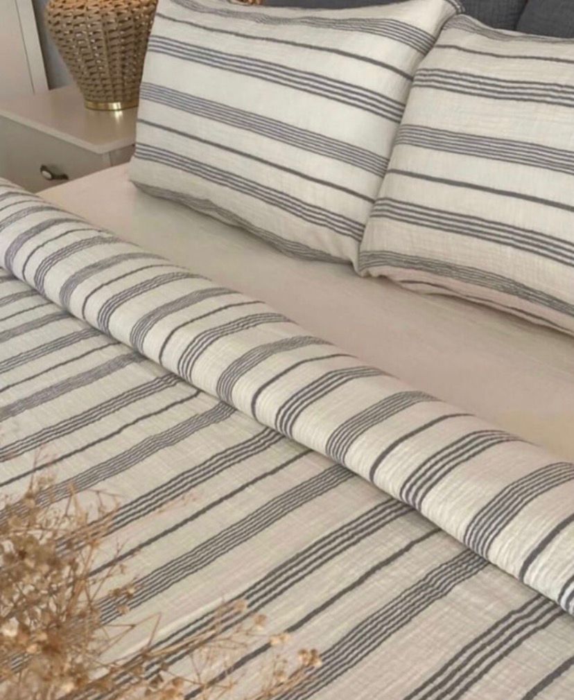 Müslin Nevresim Takımı Antrasit Renk Çizgili Çift Kişilik 200x220 cm
