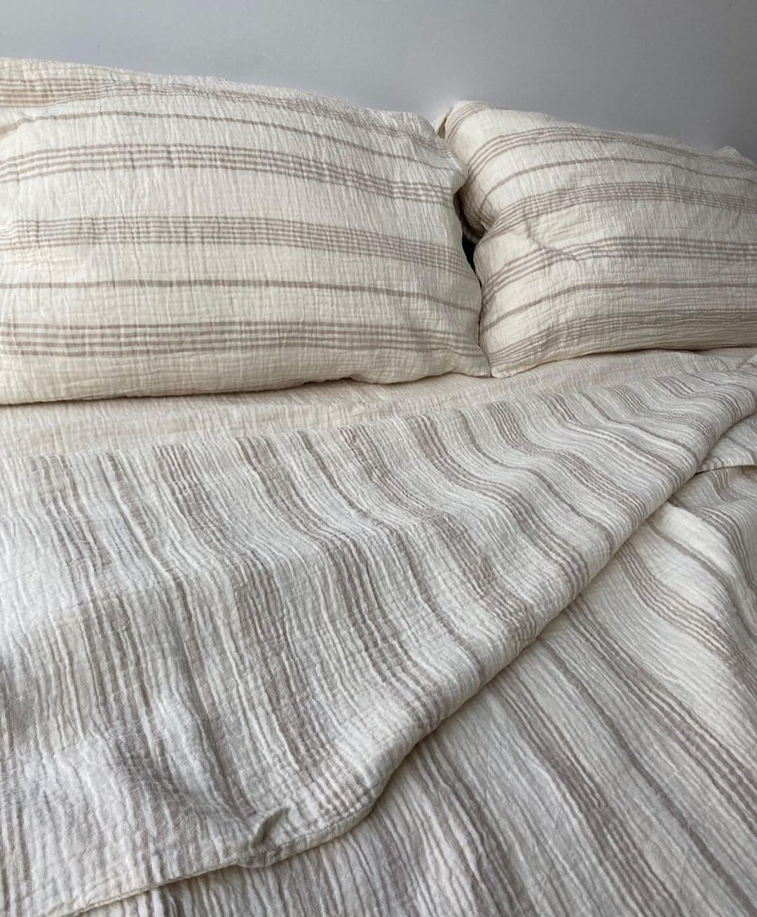 Müslin Nevresim Takımı Bej Renk Çizgili Çift Kişilik 200x220 cm
