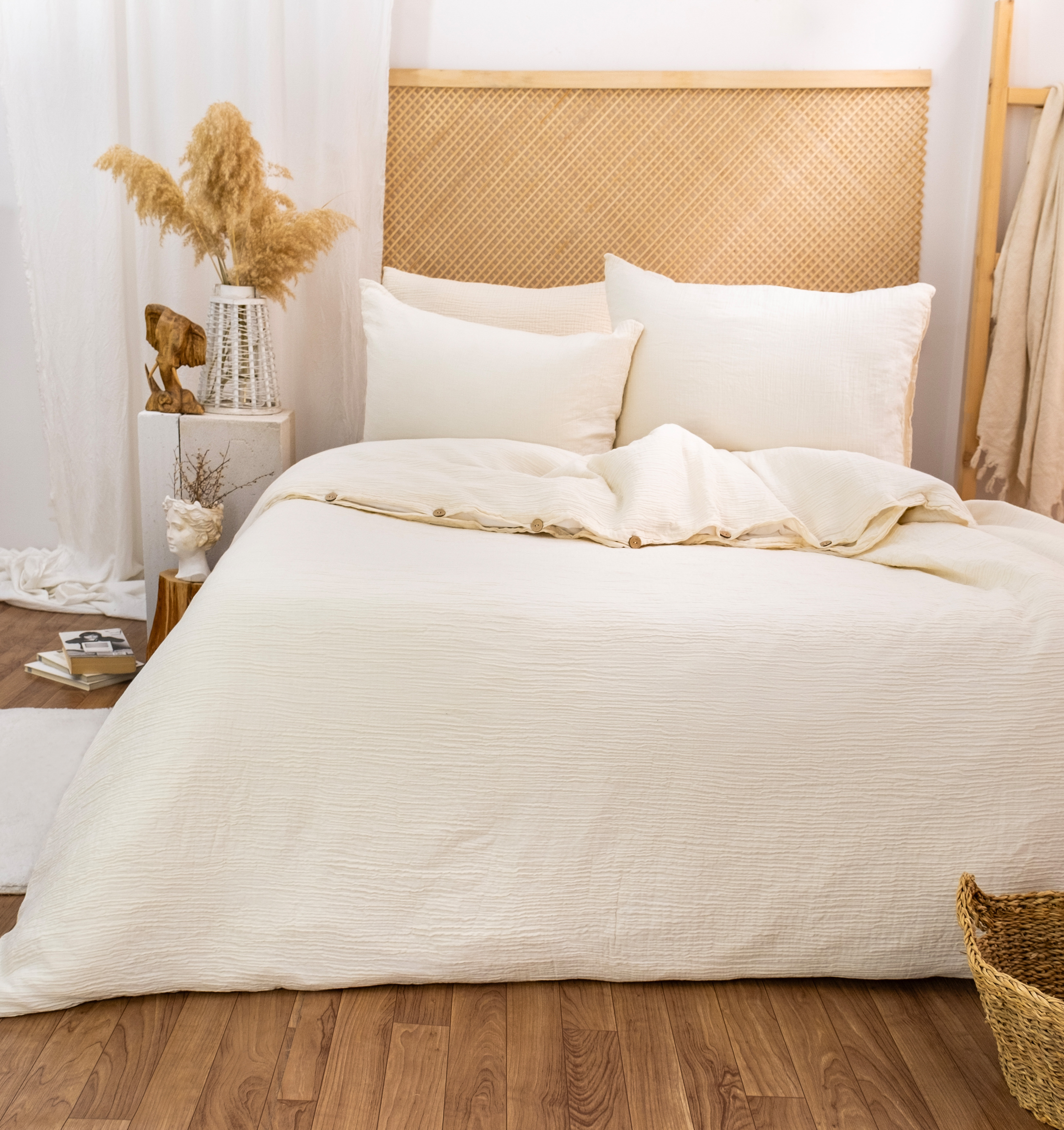 Müslin Nevresim Takımı Naturel Ekru Renk Çift Kişilik (200x220 cm)
