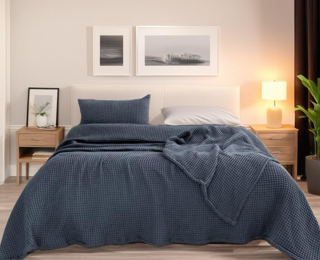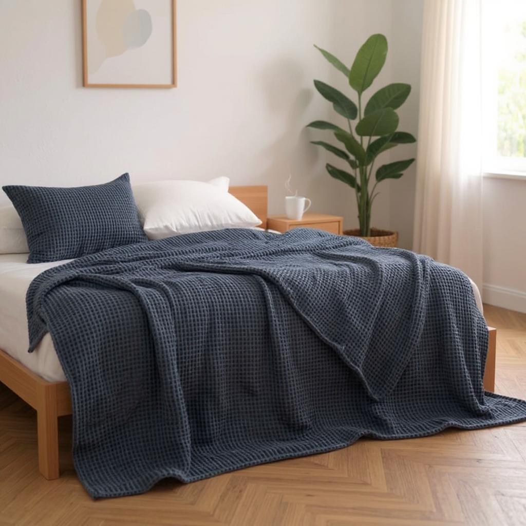 Waffle %100 Pamuk Yatak Örtüsü – Lacivert Renk, Çift Kişilik (230x250 cm)