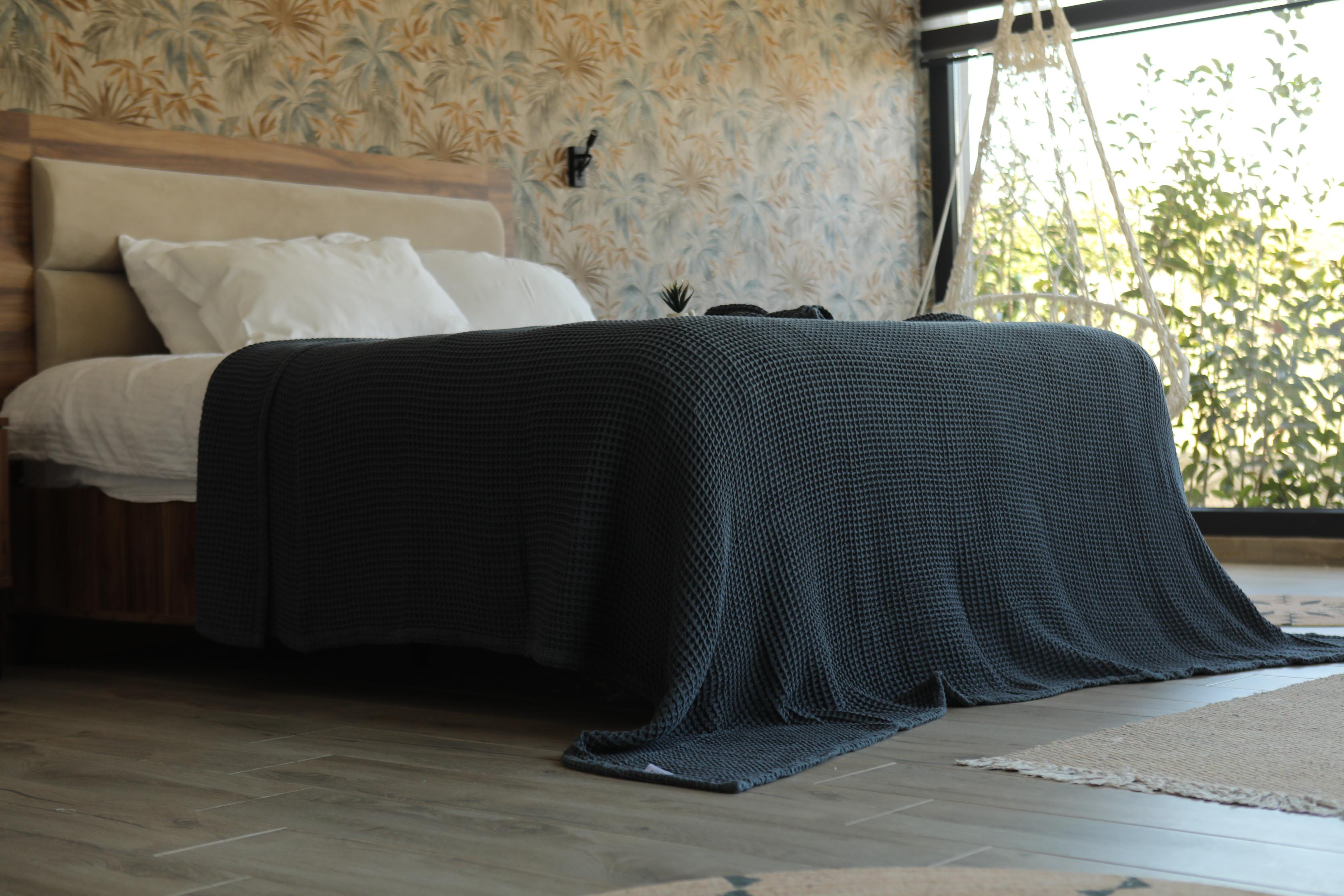 Bu özel %100 pamuk waffle yatak örtüsü, doğal pamuk liflerinden üretilmiş nefes alan dokusuyla konforu, dayanıklılığı ve şıklığı bir araya getirir. Waffle dokusunun hafif kabarık yüzeyi hem modern hem de zarif bir görünüm sunar.