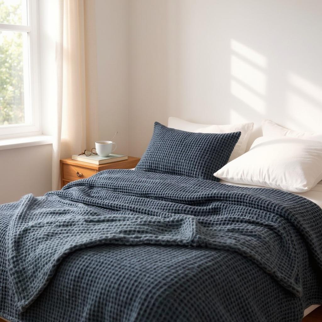 Lacivert rengin huzurlu tonları, waffle dokusunun modern yüzeyiyle birleşerek yatak odanıza sakin, şık ve dengeli bir görünüm kazandırır. Günün sonunda doğallığın huzurunu hisset. 🌙