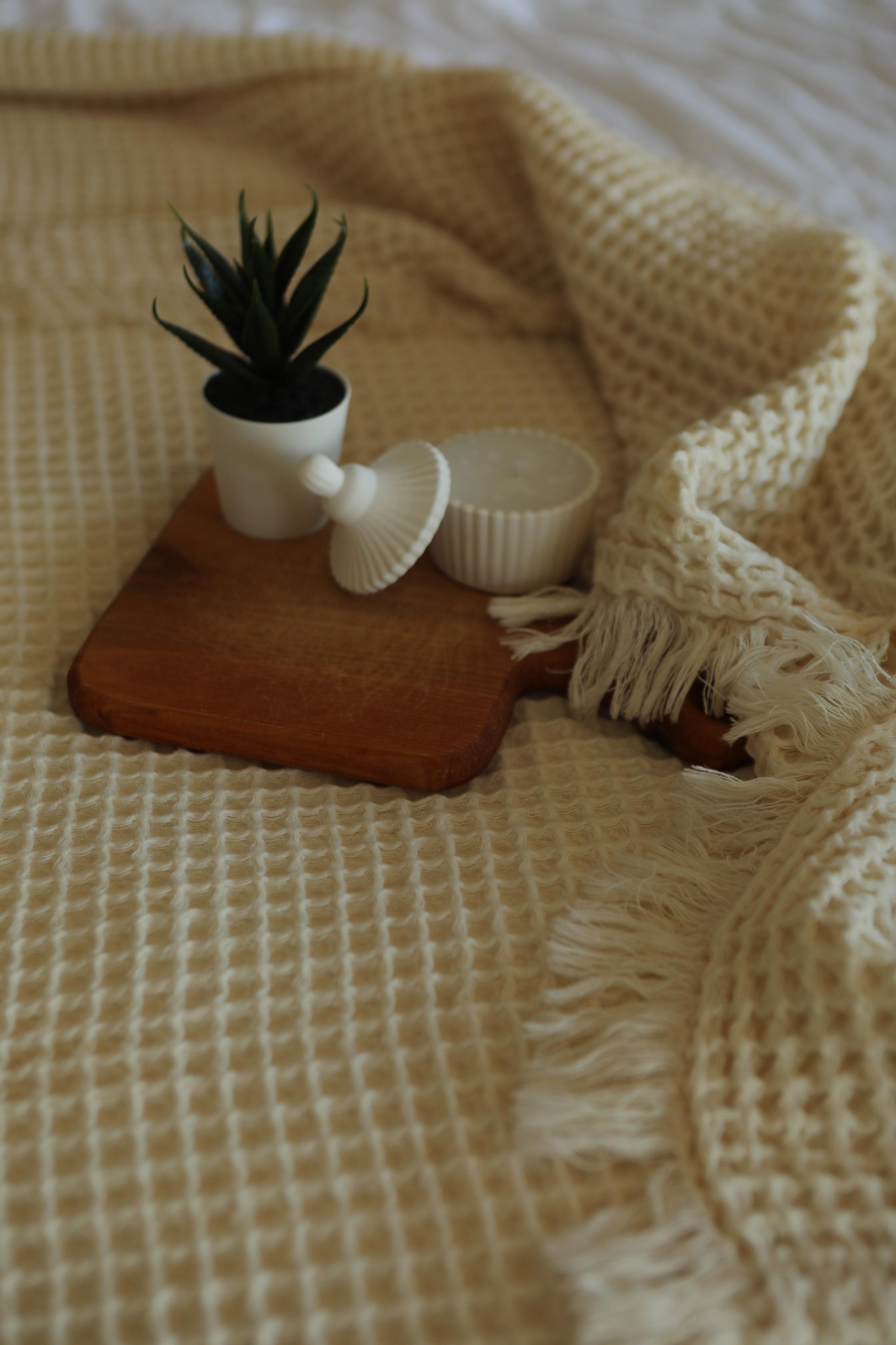Bu zarif %100 pamuk waffle yatak örtüsü, yumuşacık dokusu ve kabarık yüzeyiyle yatak odana konfor ve estetik kazandırır. Waffle dokusunun modern çizgileri, hem dokunsal hem görsel olarak huzur verici bir deneyim sunar.