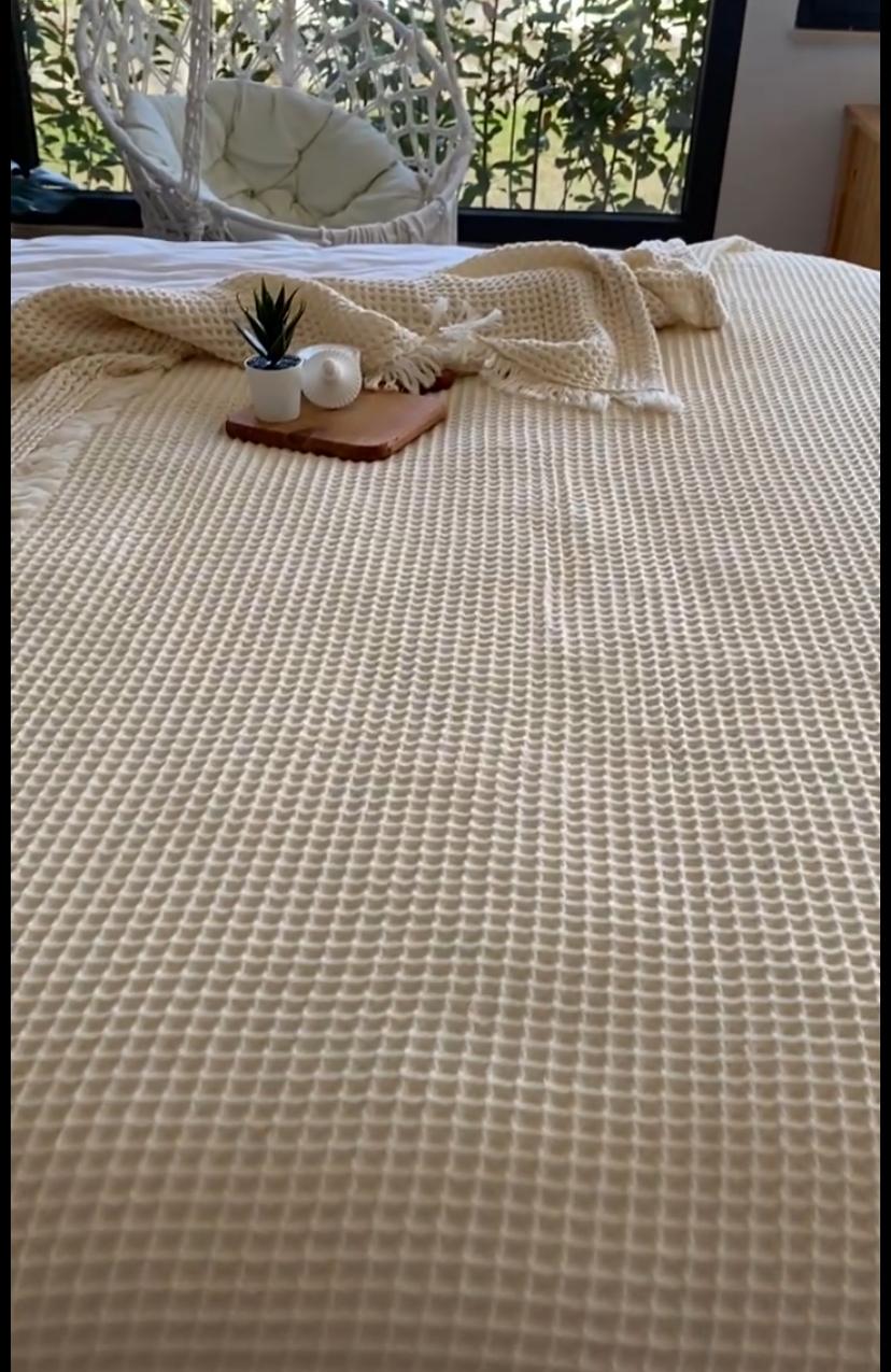 Waffle %100 Pamuk Yatak Örtüsü – Vizon Renk, Çift Kişilik (230x250 cm)